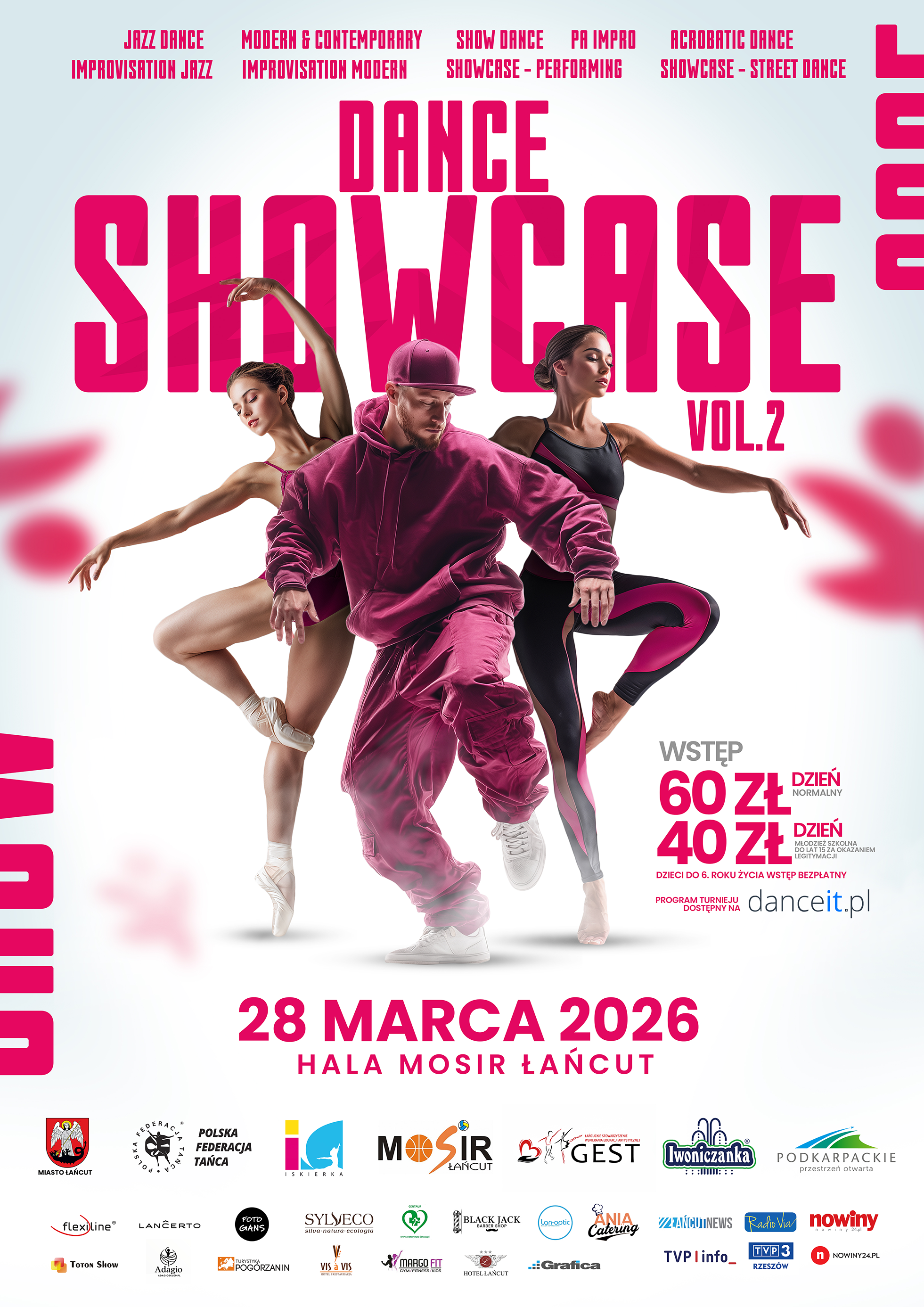 Organizatorami turnieju są: Łańcuckie Stowarzyszenie Wspierania Edukacji Artystycznej GEST oraz Zespół Taneczny „ISKIERKA ŁAŃCUT”. Wydarzenie organizowane jest pod patronatem Polskiej Federacji Tańca oraz Honorowym Patronatem Burmistrza Miasta Łańcuta. Partnerzy wydarzenia: Miasto Łańcut, Województwo Podkarpackie, MOSiR Łańcut, Polska Federacja Tańca, Iskierka Łańcut, Iwoniczanka, Toton Show, Adagio Sklep Taneczny, Hotel Łańcut, Sylveco, Flexiline, Lancerto, Catering Ania, Margo Fit, Centaur, Foto Gans, Grafica, Black Jack Barbershop, Lan-optic, Turystyka Pogórzanin, Vis a vis INSTAGRAM OBSERWUJ REGULAMIN TURNIEJU POBIERZ Partnerem Wydarzenia Dance Showcase jest Wojewdztwo Pokarpackie